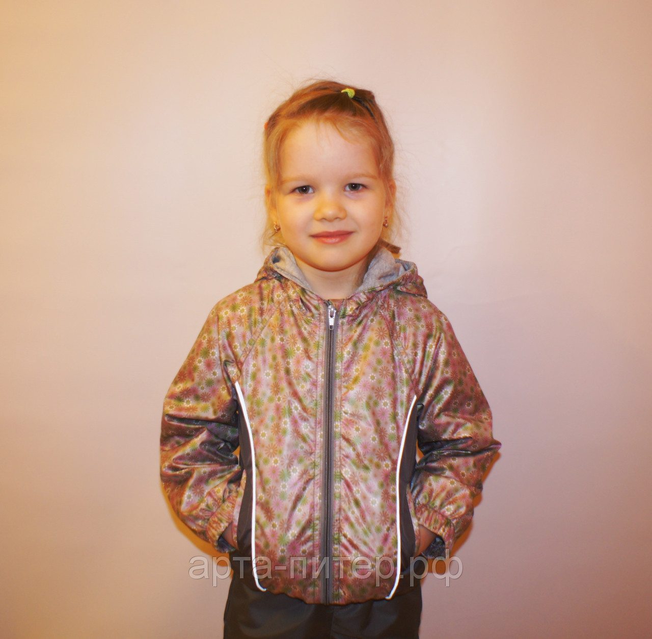 Капюшон не съемный, 2 боковых кармана, светоотражающий кант по бокам.